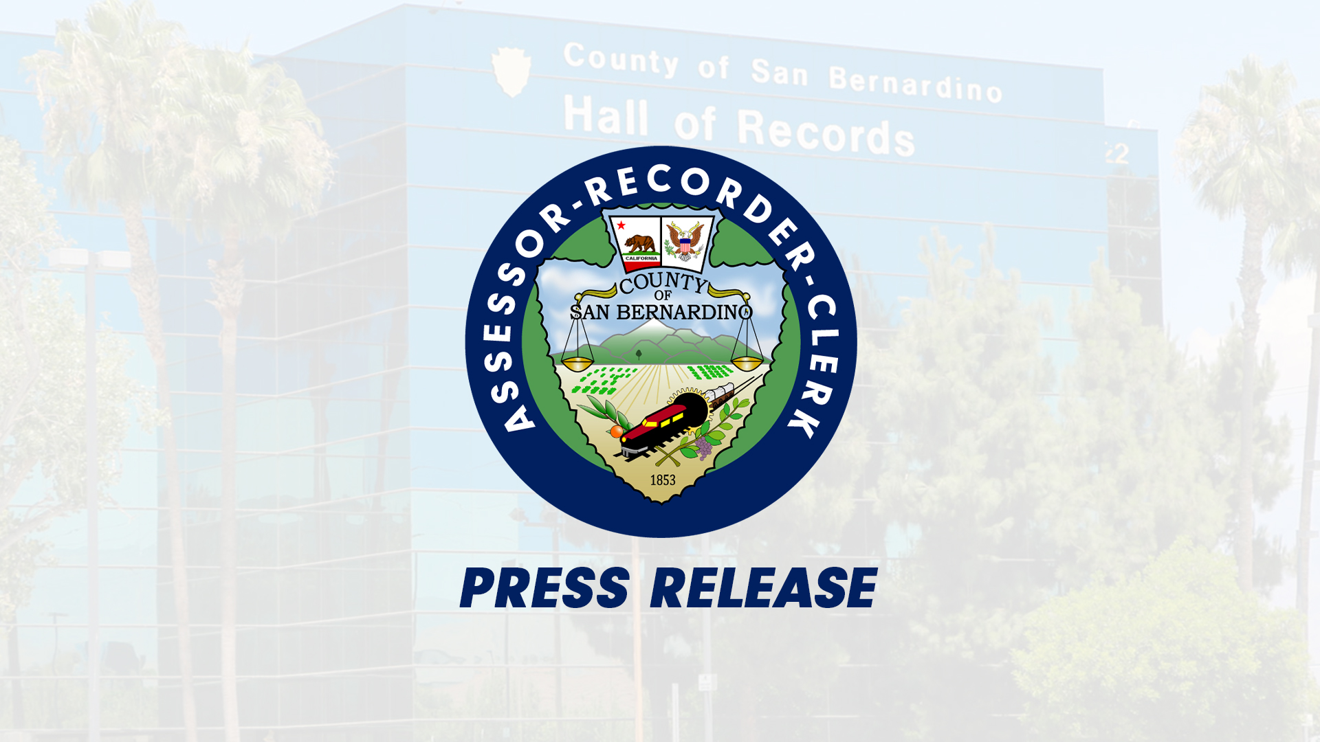 SAN BERNARDINO, CA (March 16, 2020) – The San Bernardino County Assessor-RecorderClerk will be closing its offices to the public and will be providing services exclusively via mail, email or phone, effective Wednesday, March 18th until further notice. This is a precautionary measure being taken to help slow the spread of COVID-19.