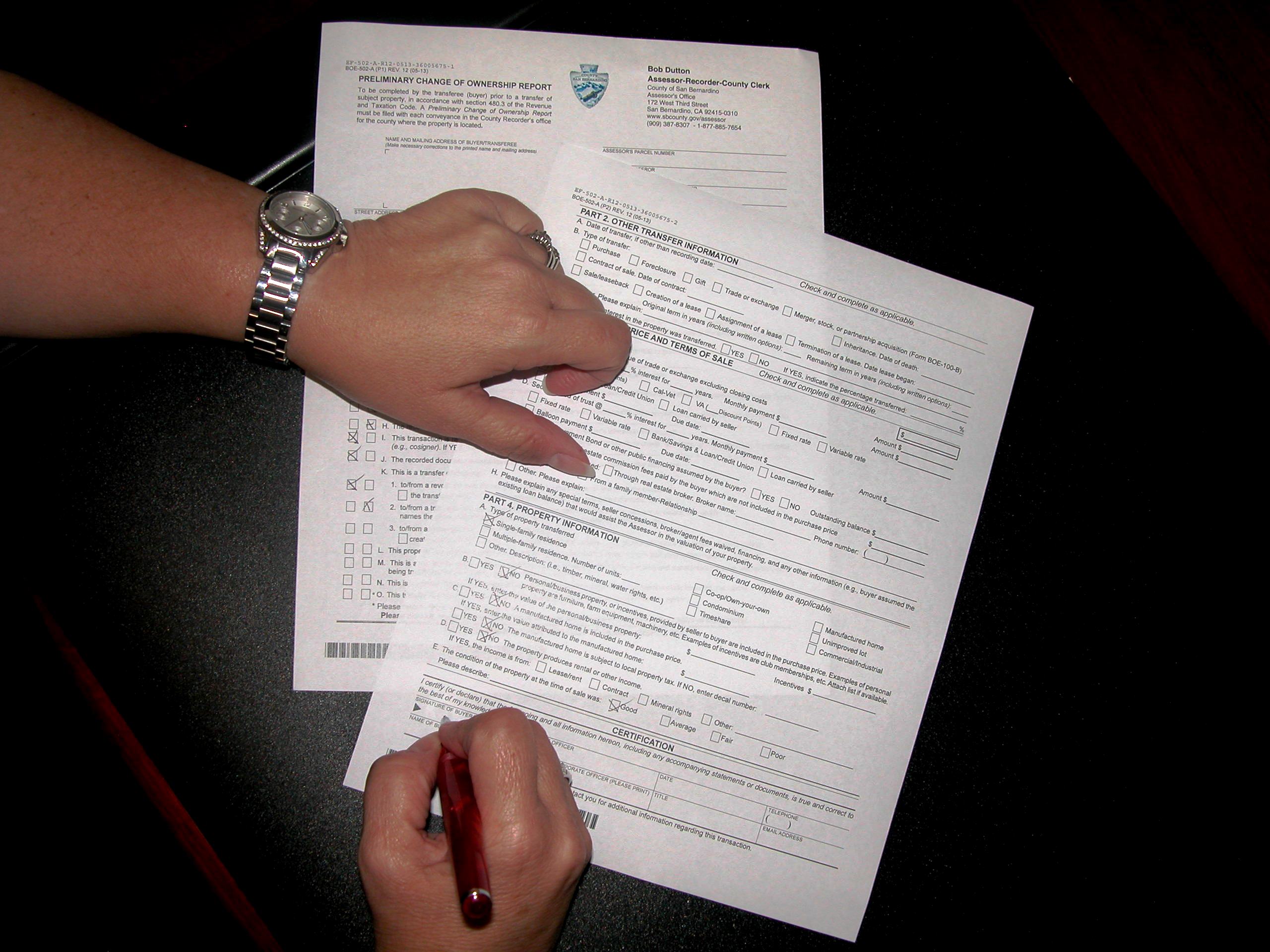 When a change in ownership occurs, the Assessor receives a copy of the recorded deed or other official document and determines if an appraisal is required under State law.
